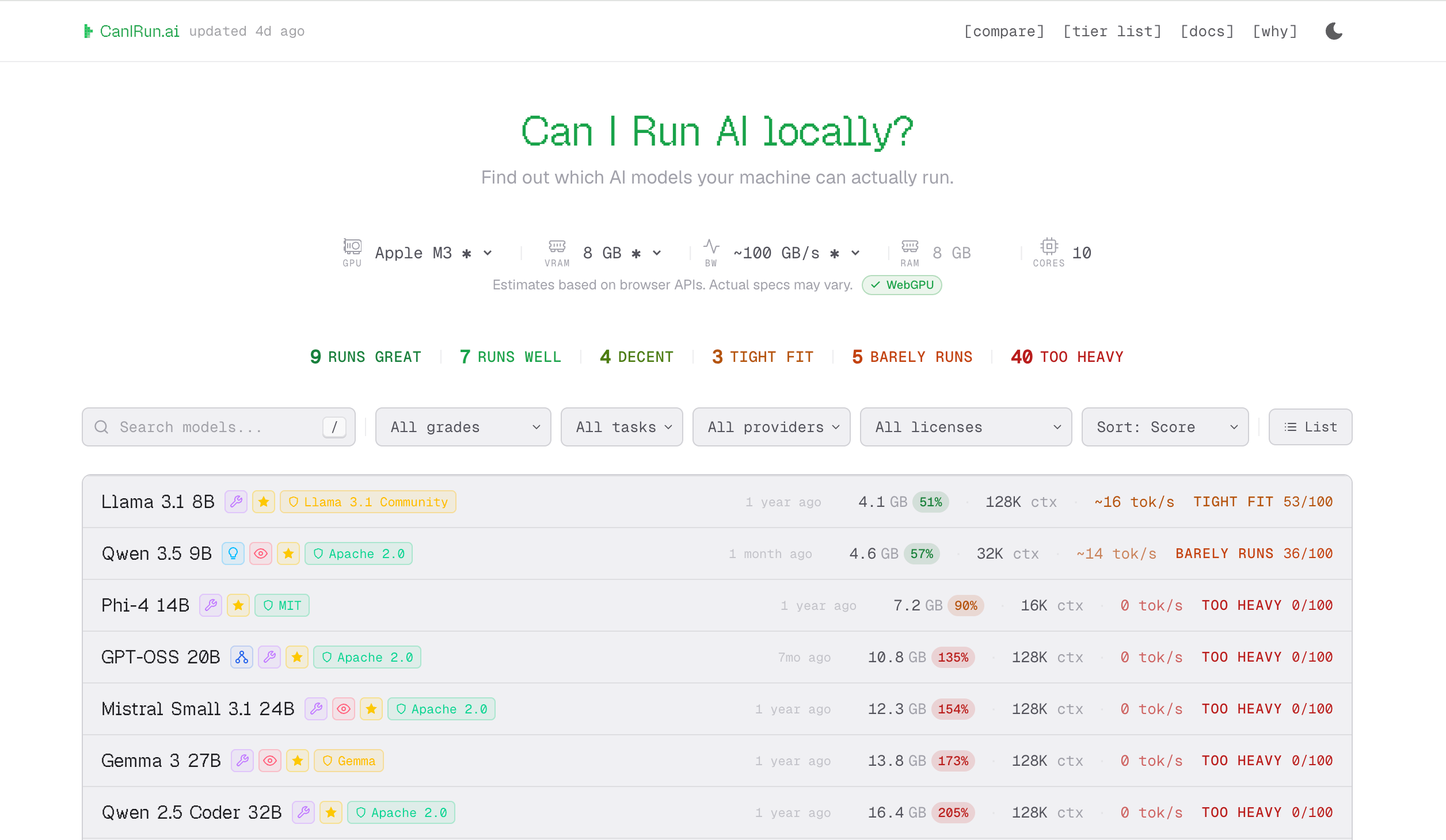 - [8] CanIRun.ai — Can your machine run AI models?: https://www.canirun.ai/