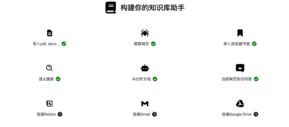 Chrome 的 AI 插件,利用 RAG 管理并创造本地知识库。支持文件导入、网页总结等。相当于把个人知识库放到统一的地方,由 AI 管理并回答。支持云端以及本地模型。