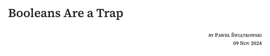 - [5] 布尔值是代码陷阱: https://katafrakt.me/2024/11/09/booleans-are-a-trap/